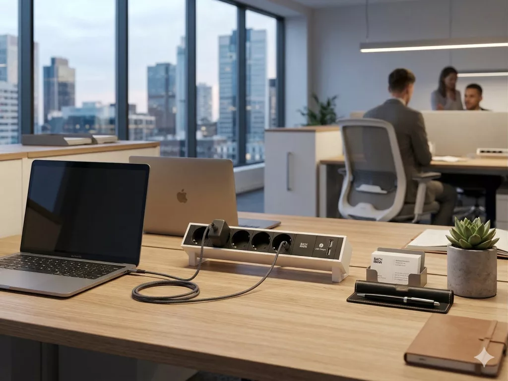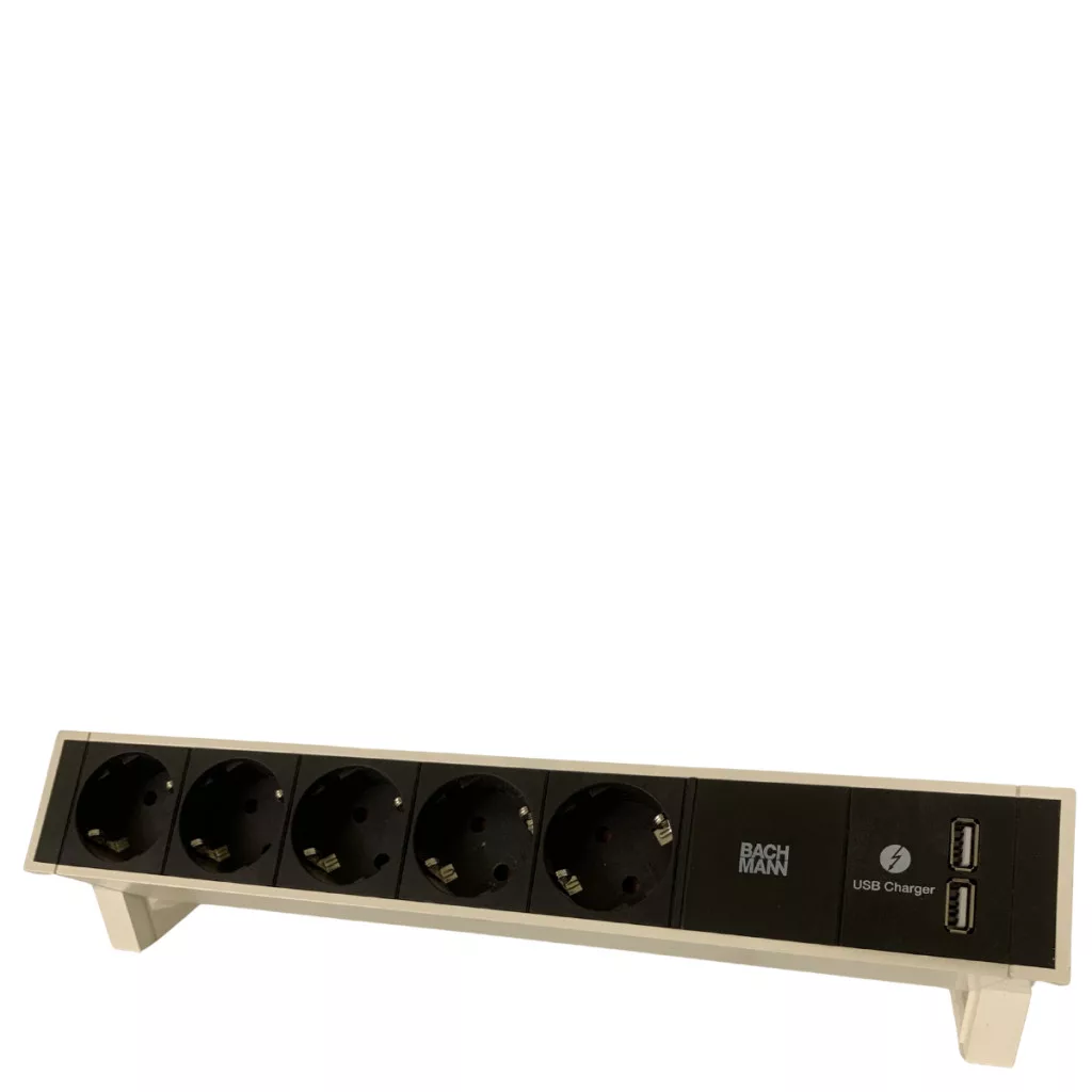 5 db Schuko (típusú) hálózati aljzat: A 35 fokos szögben elforgatott aljzatok lehetővé teszik a nagyobb méretű adapterek kényelmes használatát is anélkül, hogy eltakarnák a szomszédos helyet.