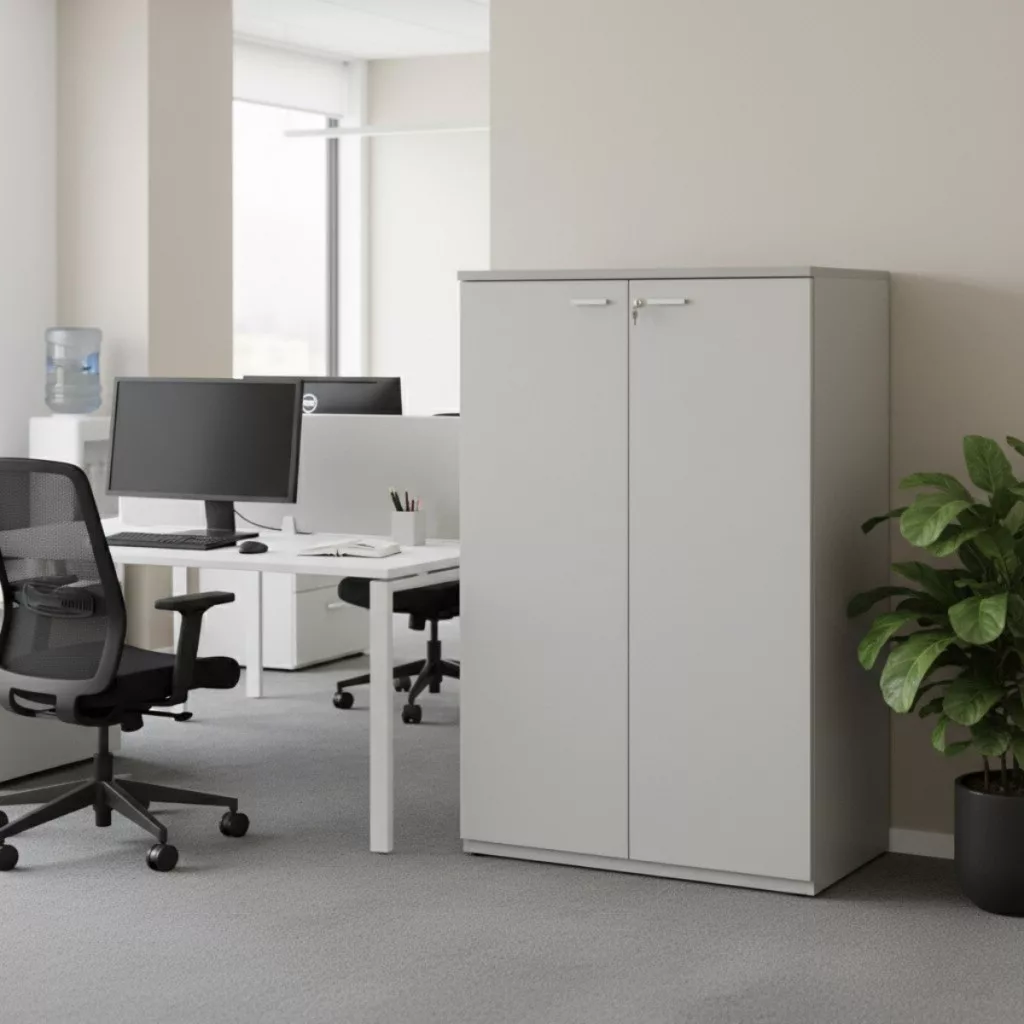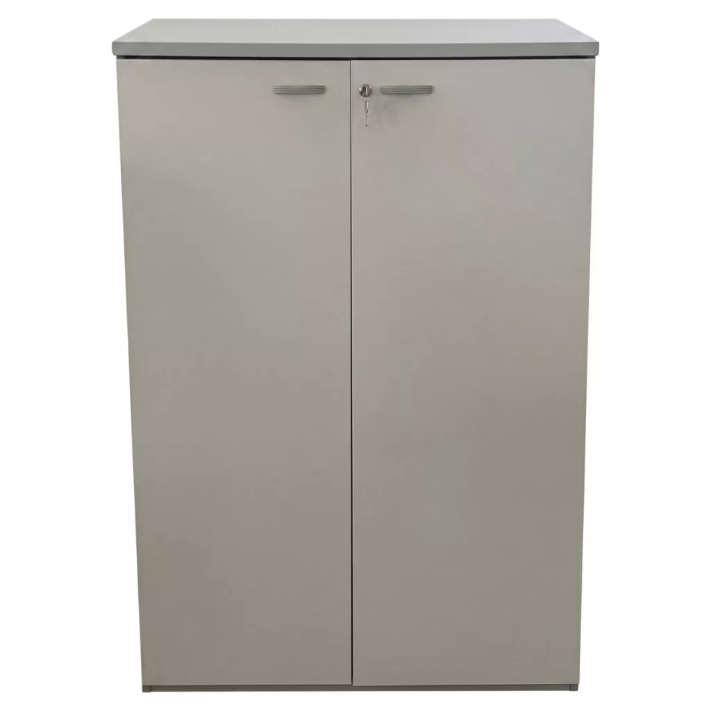 Középmagas kétajtós szekrény halványszürke színben
