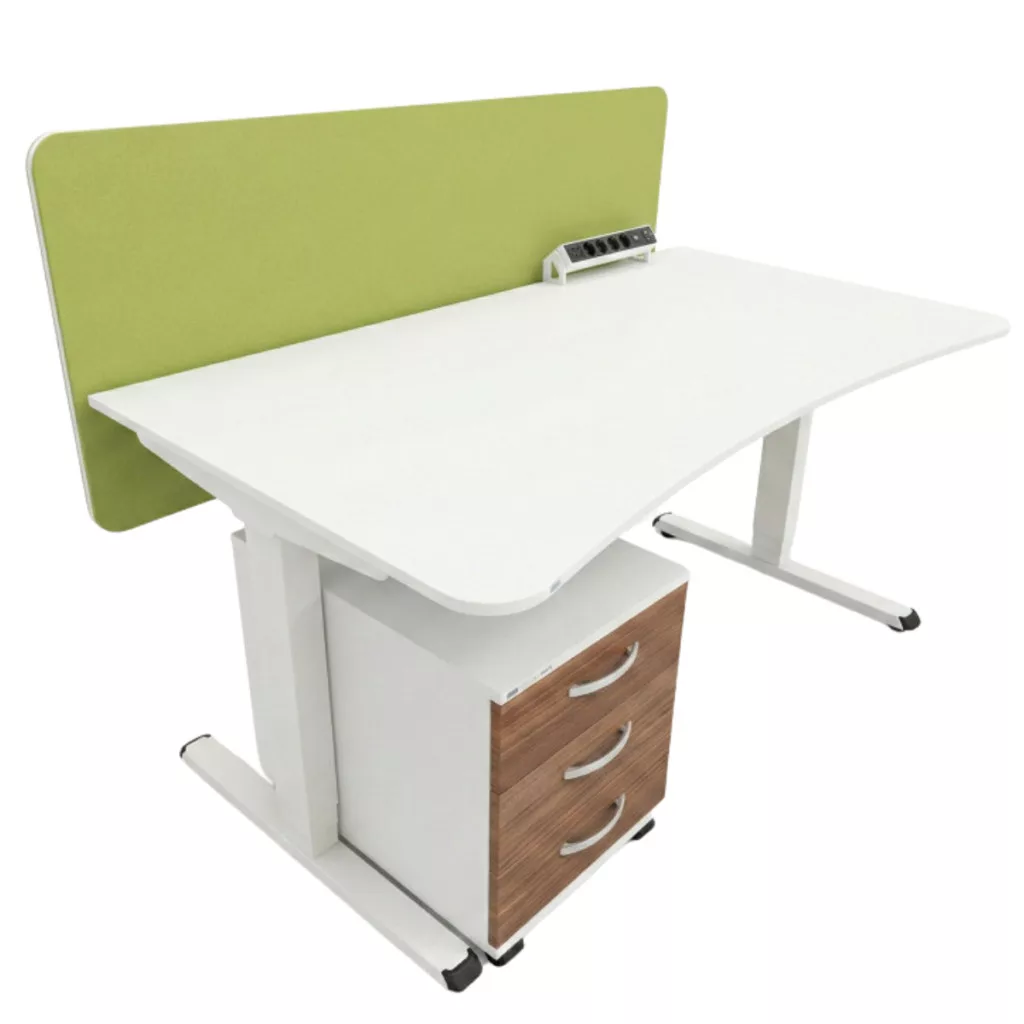 Az asztal elektromos magasságállítással rendelkezik, így egyszerűen válthatunk ülő és álló munkapozíció között. Ez ma már a modern irodák egyik alapvető ergonomiai megoldása, amely segít csökkenteni a hosszan tartó ülőmunka terhelését.