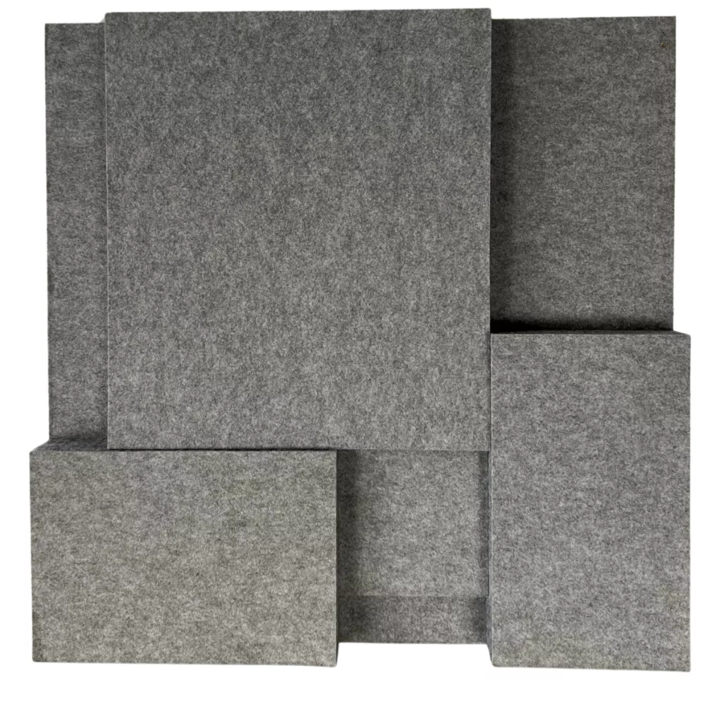 Anyaga: Úgynevezett PET-filcből (préselt poliészter szálakból) készült. Ez az anyag környezetbarát, tartós, és kiváló hangelnyelő tulajdonságokkal rendelkezik.