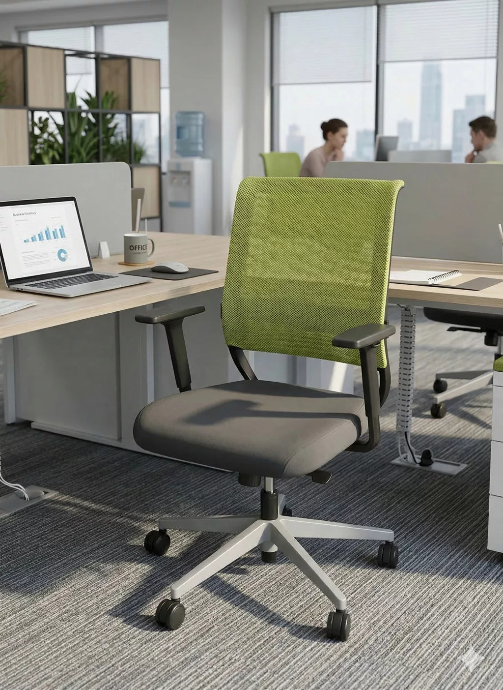 A szék magasságállítható deréktámasszal (lordózis támasz) és ergonomikus ülésmechanikával rendelkezik, amely alkalmazkodik a felhasználó mozgásához. Ez segít fenntartani a helyes ülőpozíciót és csökkenti a hát terhelését a hosszabb munkanapok során.