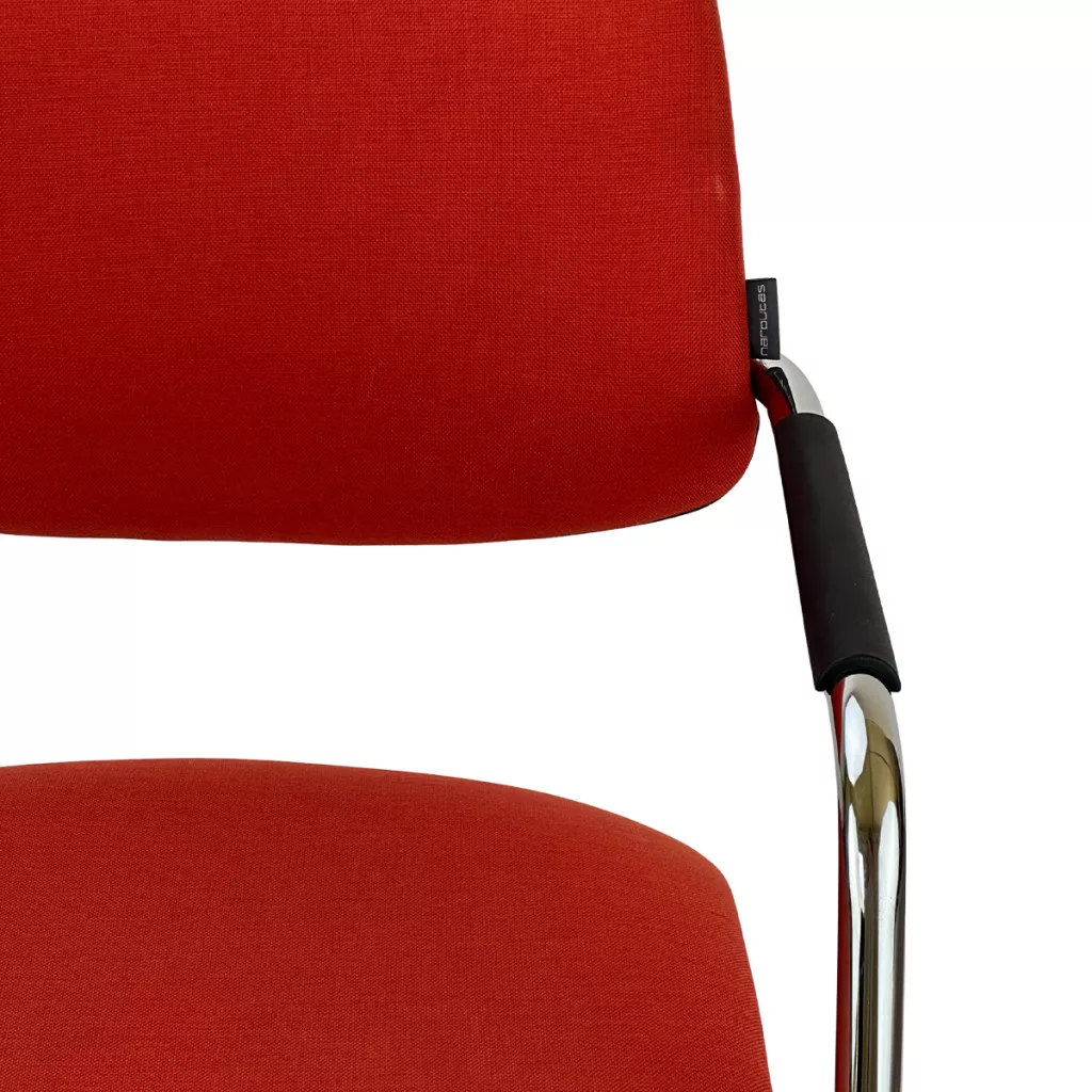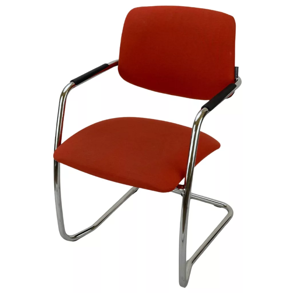A beépített karfák fekete műanyag betéttel rendelkeznek, ezáltal kényelmes alátámasztást nyújtanak a karoknak, miközben vizuálisan is jól illeszkednek a dizájnhoz. A szék kiváló állapotban van, használt, de gondosan megőrzött állapotban érkezik új tulajdonosához.