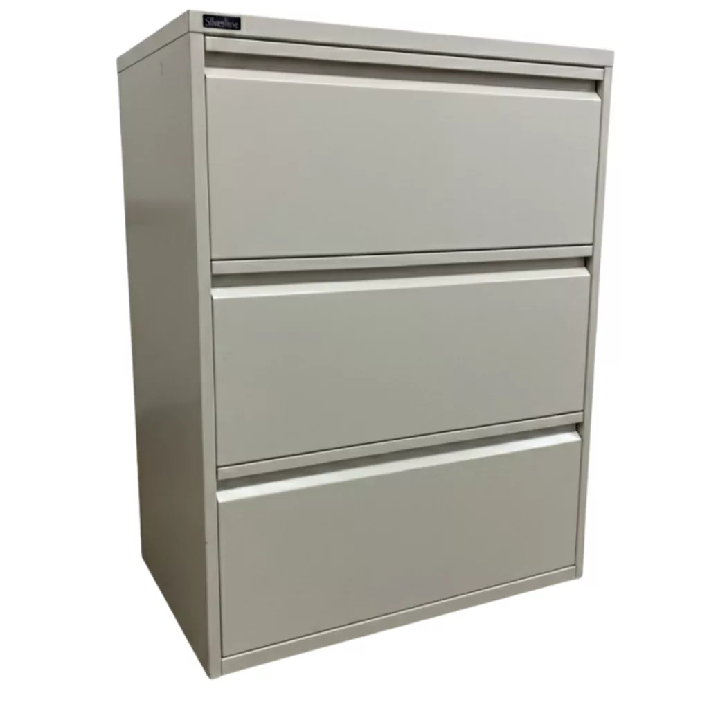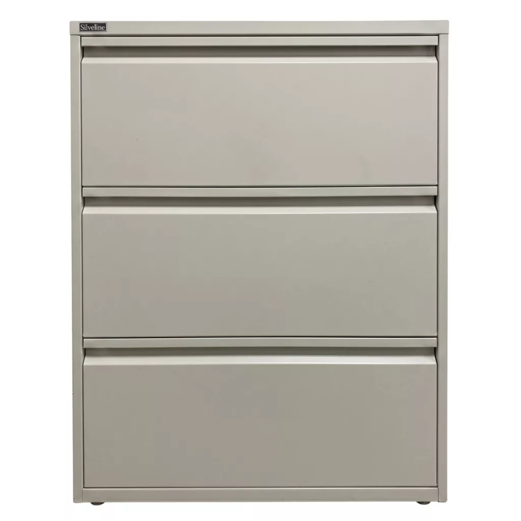 A Silverline irattároló szekrényei a brit irodabútor-piac megbízható szereplői, ahol a funkcionalitás és a masszív kialakítás találkozik a letisztult dizájnnal. Ez a háromfiókos, vízszintesen nyíló fém szekrény ideális megoldás dokumentumok, függőmappák vagy irodai felszerelések rendszerezésére.