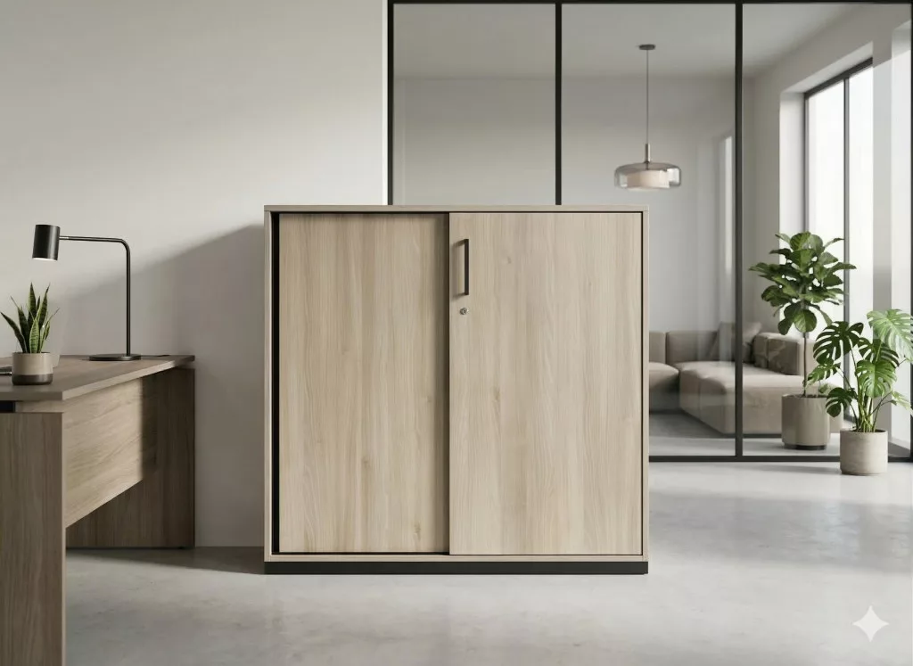 Steelcase tolóajtós irodai szekrény – 120×44 cm