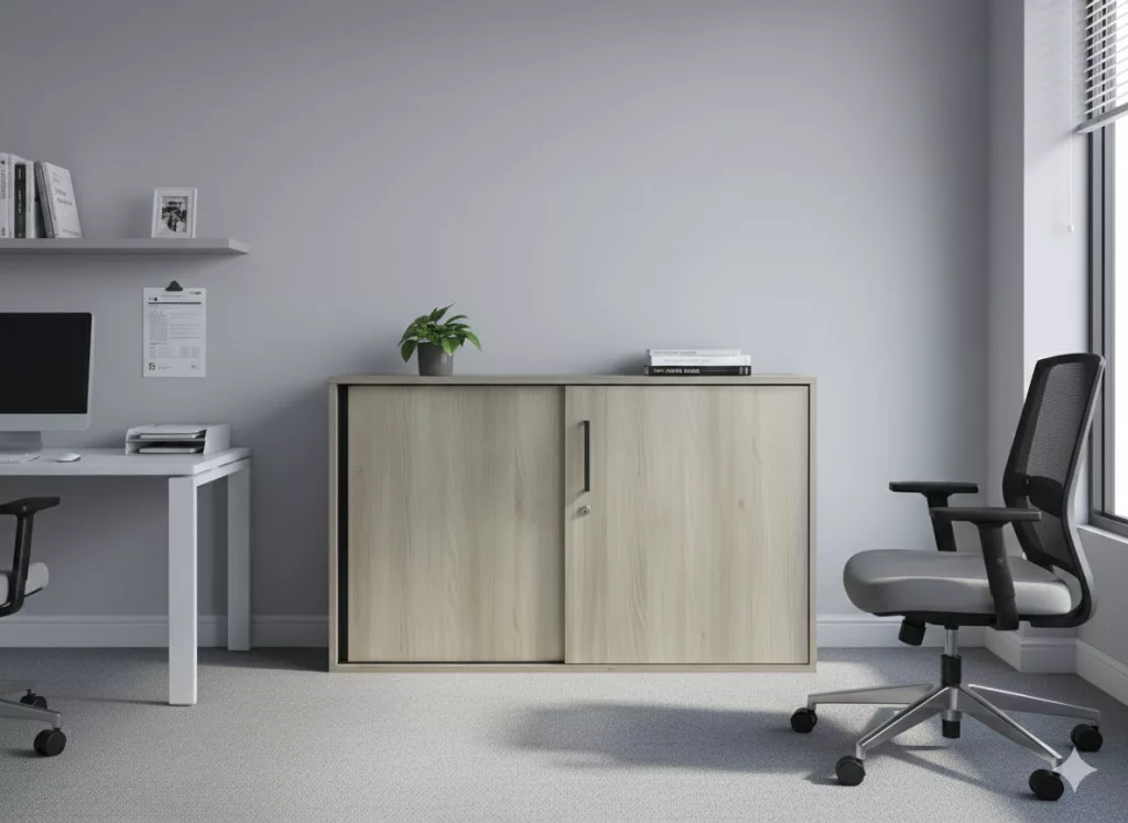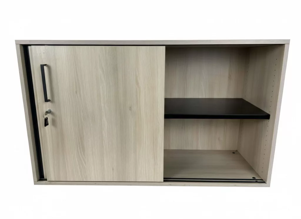 Ez az újszerű, magas minőségű zárható irodai szekrény tolóajtós kialakításának köszönhetően ideális választás szűkebb helyiségekbe is, ahol a nyíló ajtók nem praktikusak. Tartós, masszív szerkezete megbízható tárolómegoldást kínál iratok, irodai eszközök vagy személyes tárgyak számára. A világos tölgy dekor nemcsak esztétikus, hanem könnyen illeszkedik bármely irodai enteriőrbe.